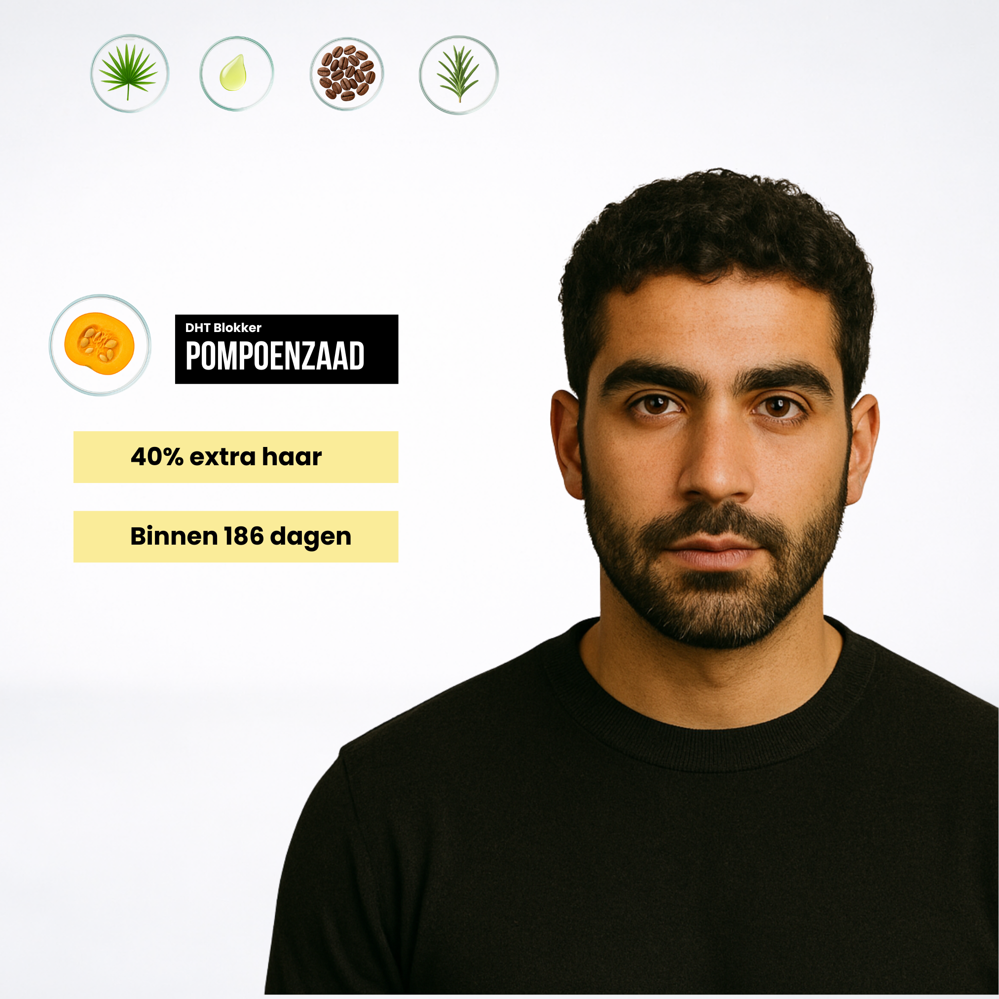 Pakt de échte oorzaak van mannelijke haaruitval aan & meer zónder medicijnen of bijwerkingen.