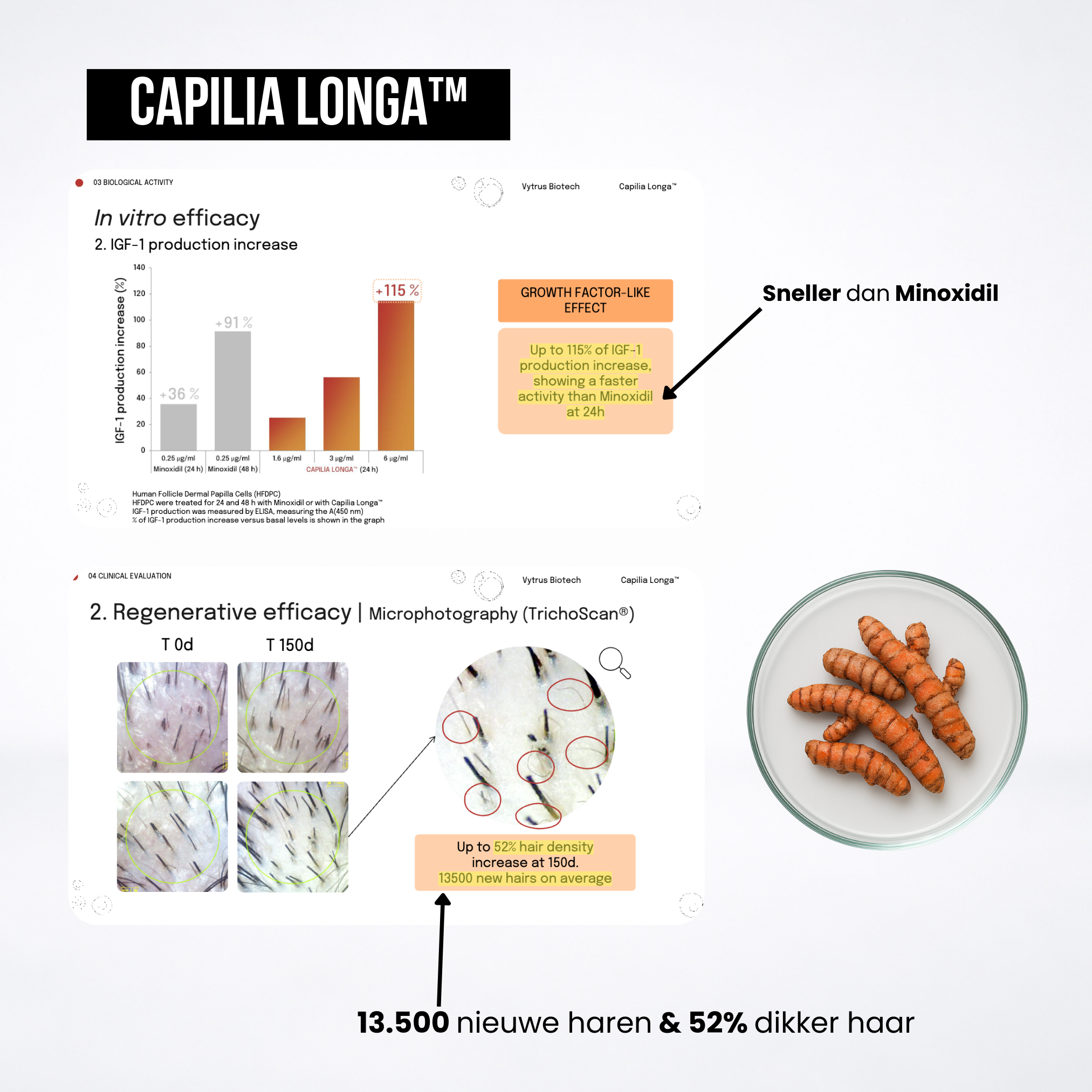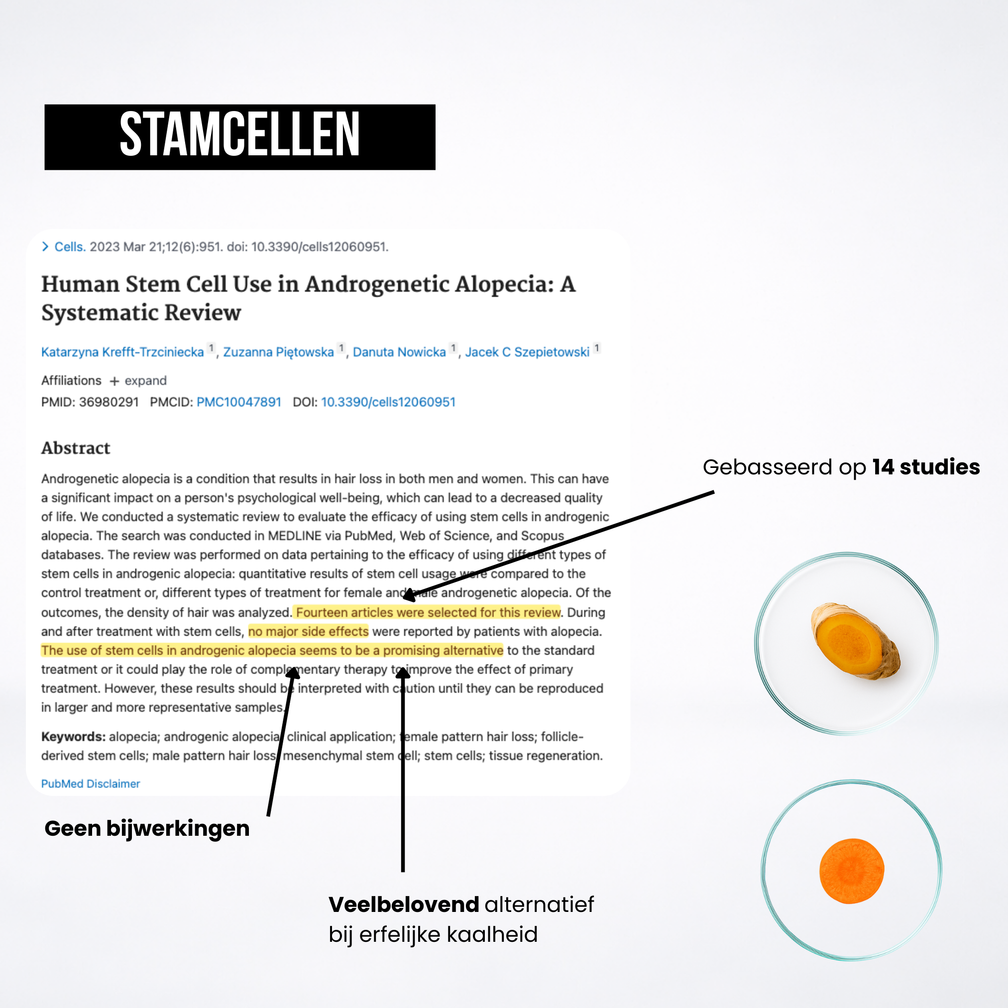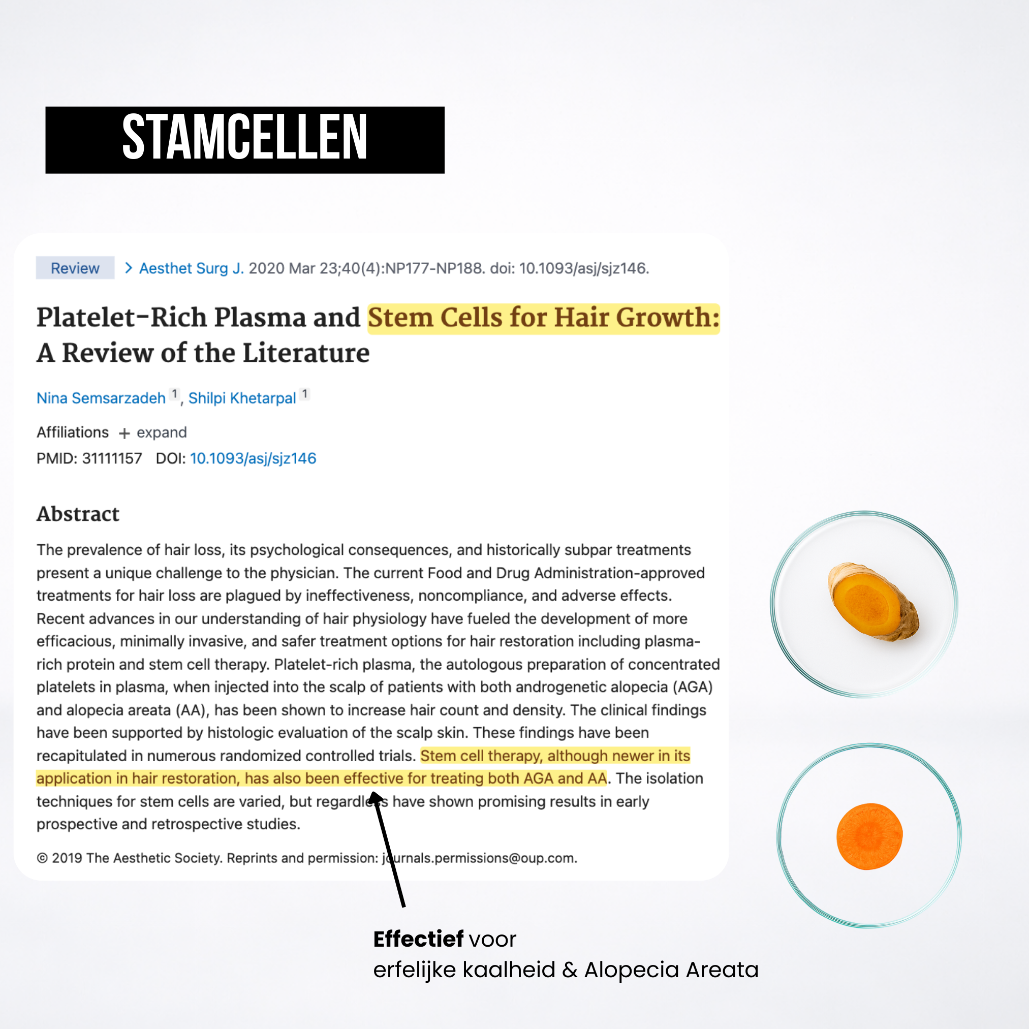 Wetenschappelijk onderbouwd in 25+ studies, met 6x DHT-blokkers en gepatenteerde stamceltechnologie.