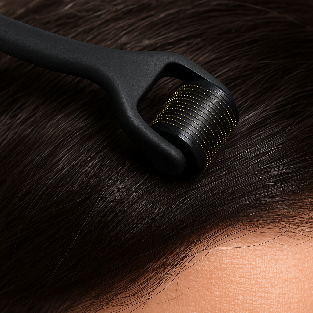 De roller creëert microscopisch kleine kanaaltjes in je hoofdhuid, waardoor bloedcirculatie en opname van het serum sterk toenemen. Dit activeert groeifactoren en stimuleert haarfollikels om weer actief te worden.